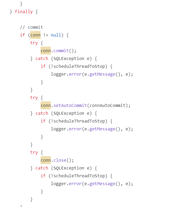 并且这个锁会随着事务的存在一直存在,这个事务最最终是在方法的finally中实现的: