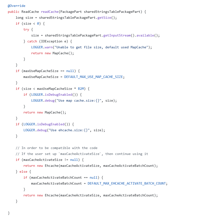 ReadCache cache = xlsxReadWorkbookHolder.getReadCache();