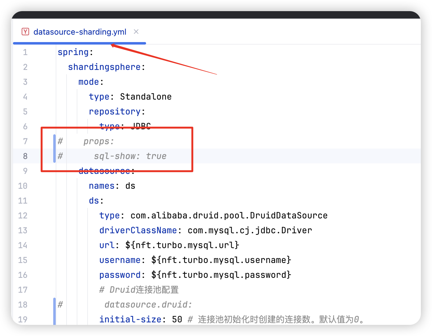 另外,我们也通过日志查看,检查了一下下单接口的日志,发现应用中有大量的和shardingjdbc的SQL有关的日志,其实这些日志可以不用打印的。所以我们修改配置项, 让这个SQL不打印: