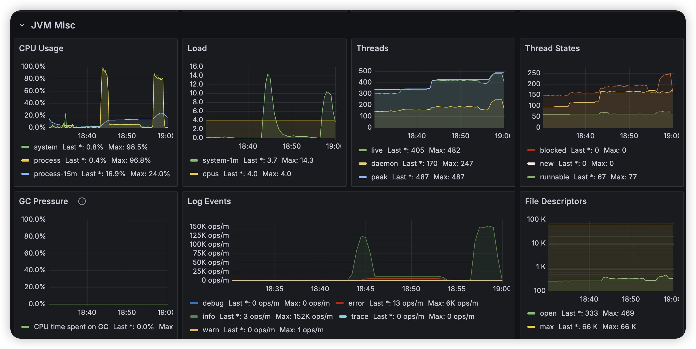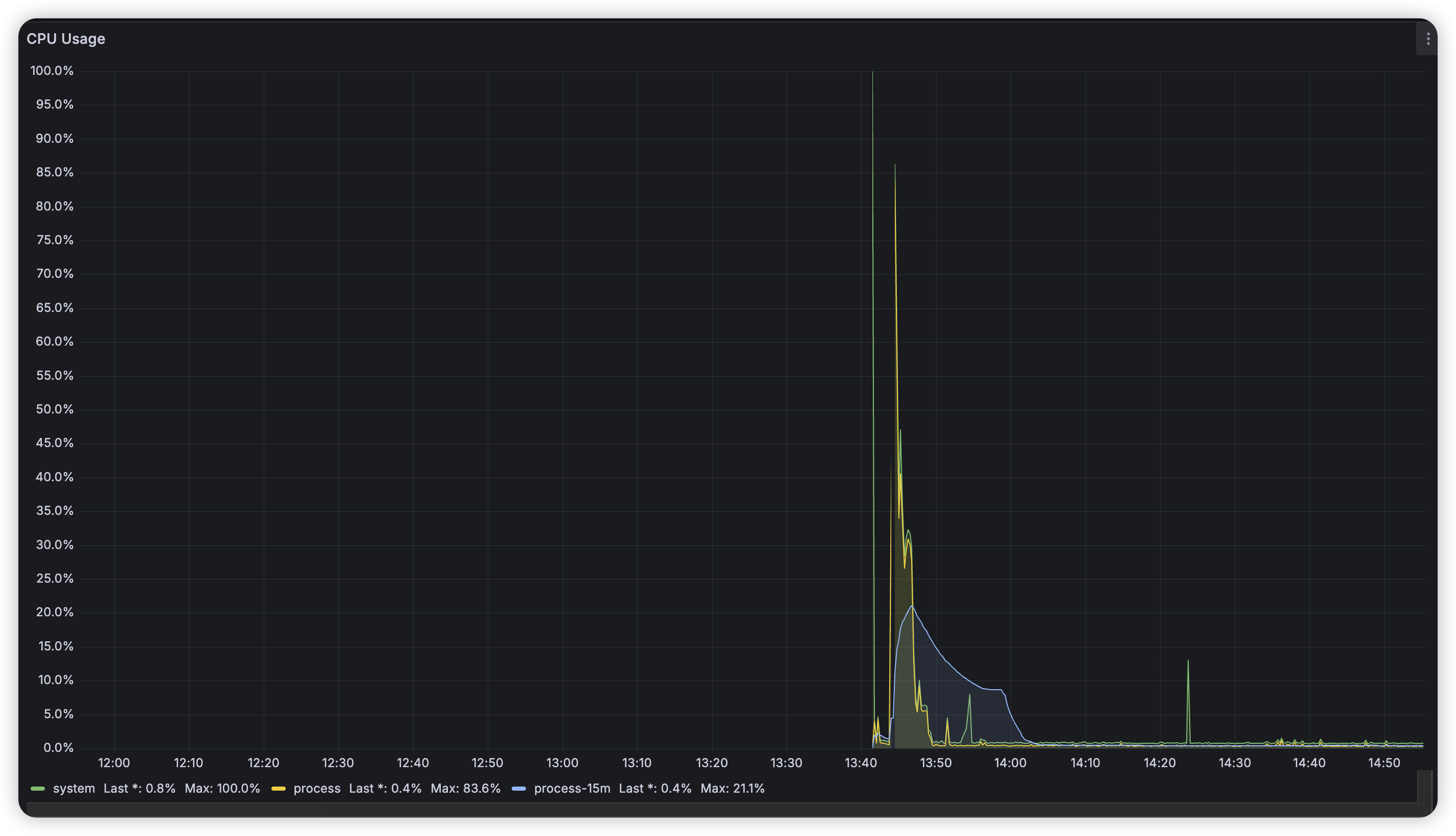 通过prometheus的监控也能看到CPU飙高的比较明显。