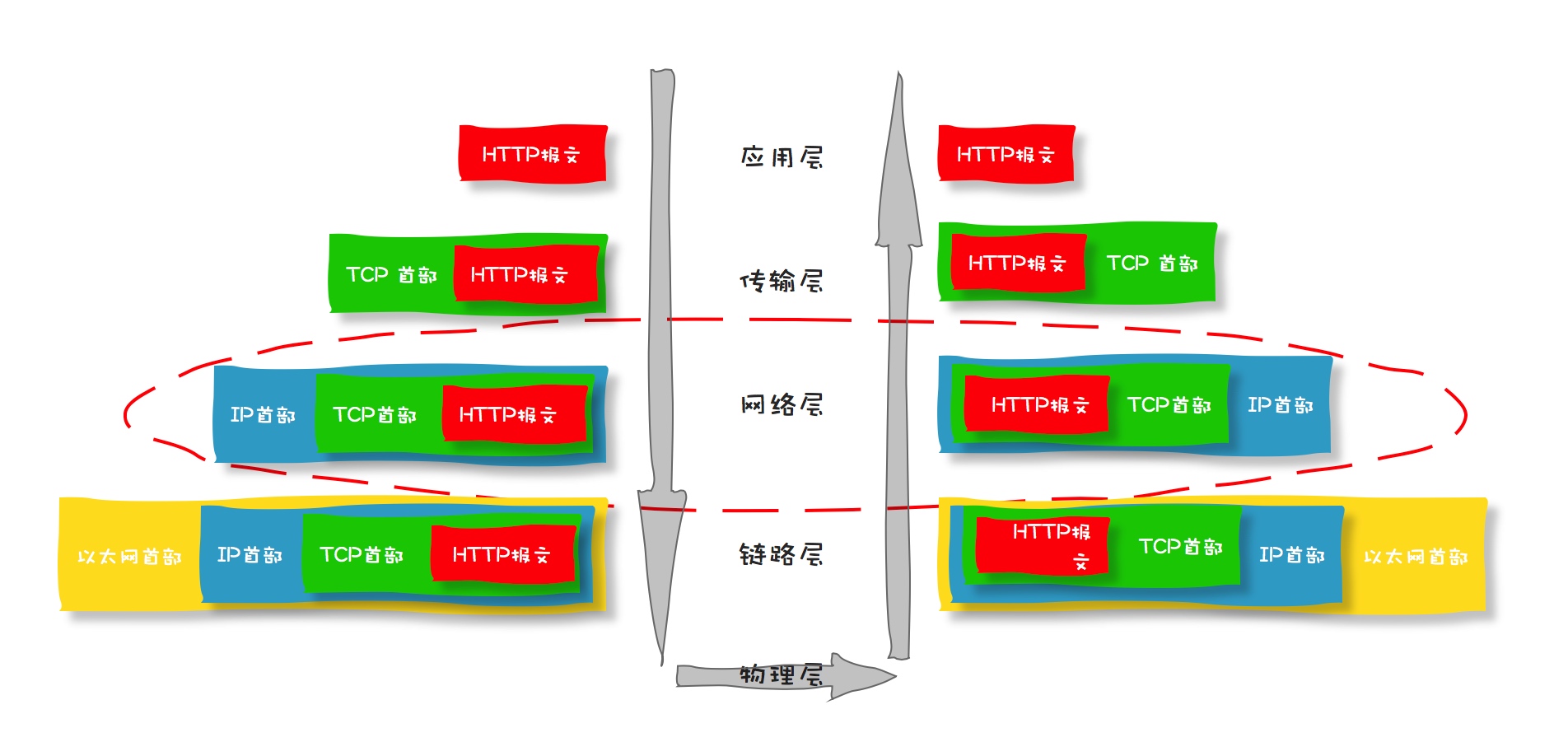 我们知道,在TCP/IP 五层协议模型中,一次网络请求要先后经过应用层->传输层->网络层->数据链路层->物理层。