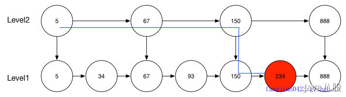 简单介绍下跳表(跳表是一种允许在一个有顺序的序列中进行快速查询的数据结构。在普通的顺序链表中查询一个元素,需要从链表头部开始一个一个节点进行遍历,然后找到节点。如图1。跳表可以解决这种查询时间过长,其元素遍历的图示如图2,跳表是一种使用”空间换时间”的概念用来提高查询效率的链表。);