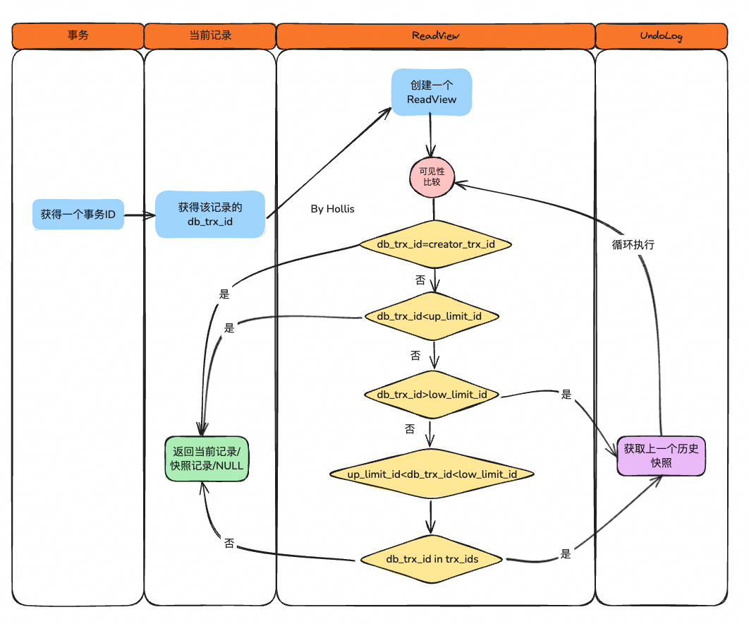 所以,总结一下,在InnoDB中,MVCC就是通过Read View + Undo Log来实现的,undo log中保存了历史快照,而Read View 用来判断具体哪一个快照是可见的。